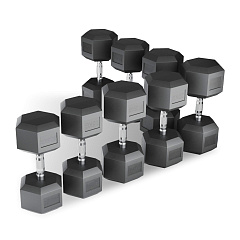 Ряд гантелей гексагональных UNIX Fit обрезиненных от 12,5 до 30 кг