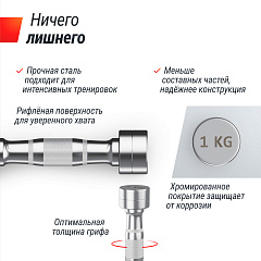 Эргономичная рифленая рукоятка обеспечивает удобный и надежный хват, исключающий скольжение даже во время самых интенсивных тренировок. Специальная структура поверхности помогает надежно удерживать гантель в руке, что значительно снижает риск травмирования и повышает эффективность каждого упражнения. Ручка идеально подходит для мужчин и женщин благодаря своему продуманному дизайну и оптимальной ширине, тем самым делая тренировочный процесс комфортным и безопасным.