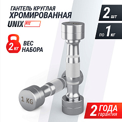 | Гантель UNIX Fit PRO круглая хромированная 1 кг, 2 шт. |