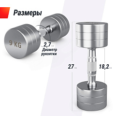| Гантель UNIX Fit PRO круглая хромированная 9 кг, 2 шт. |