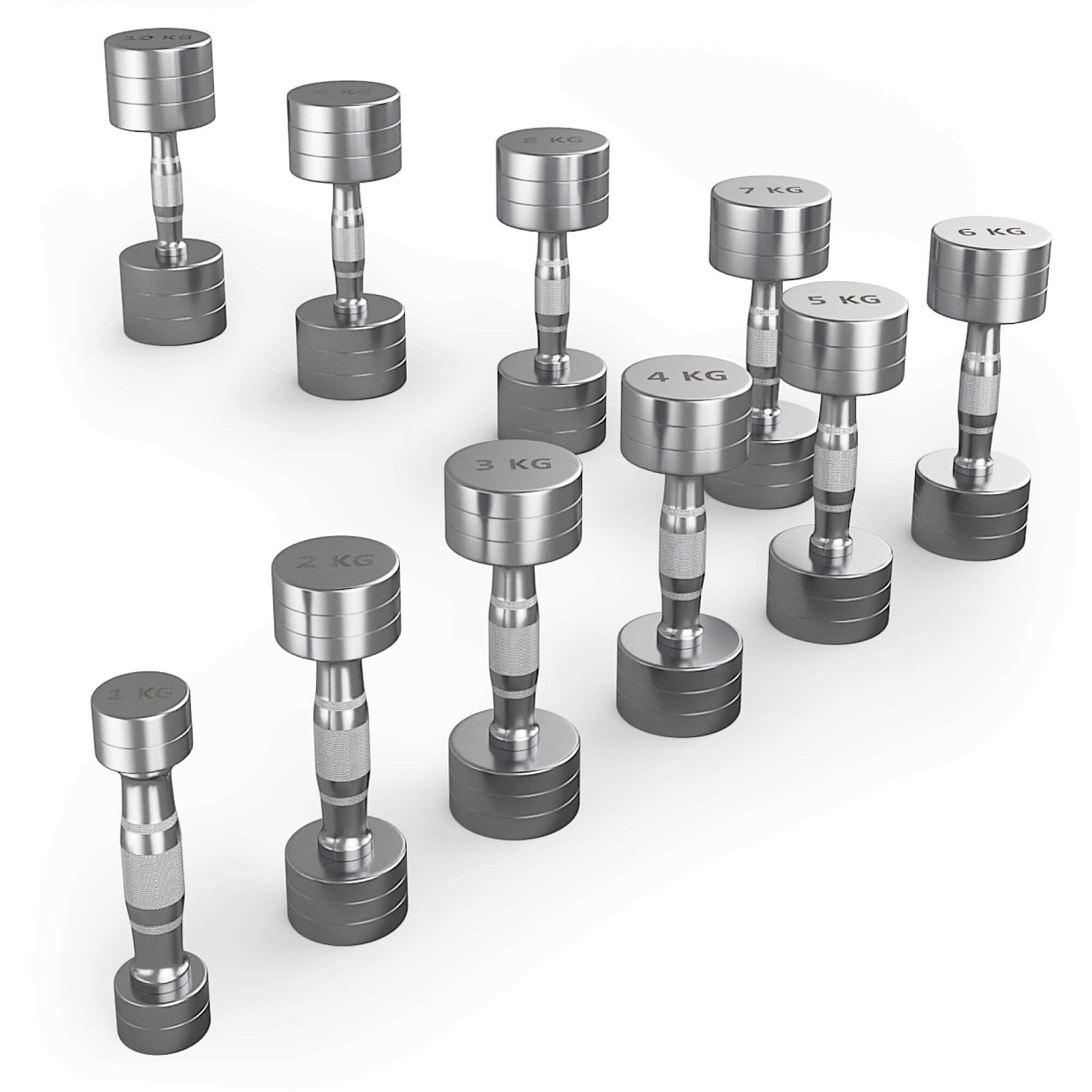 | Ряд гантелей круглых UNIX Fit хромированных от 1 до 10 кг |