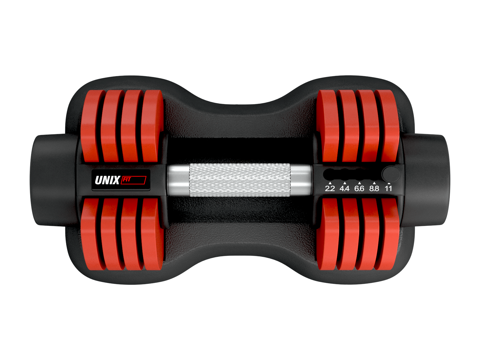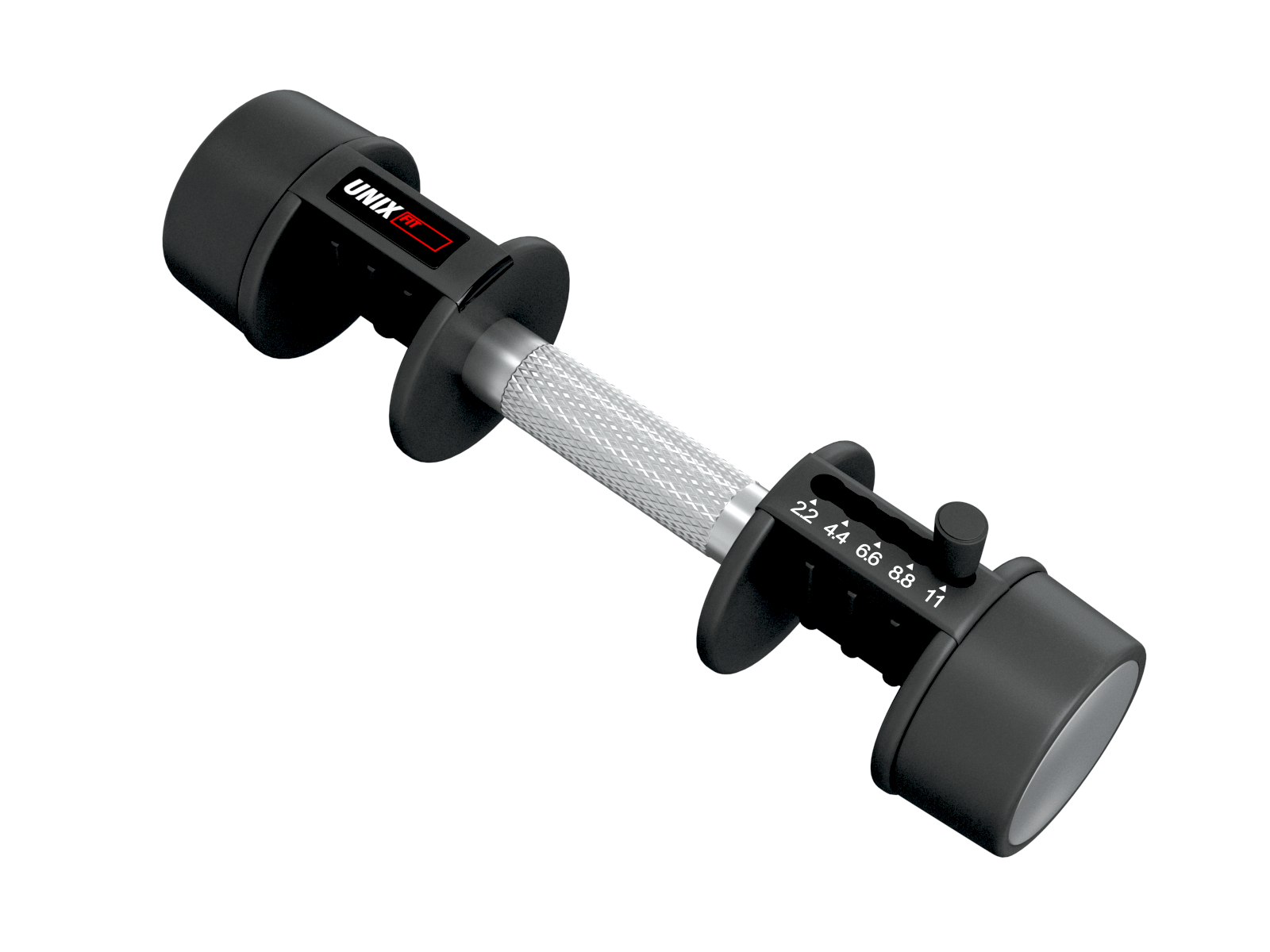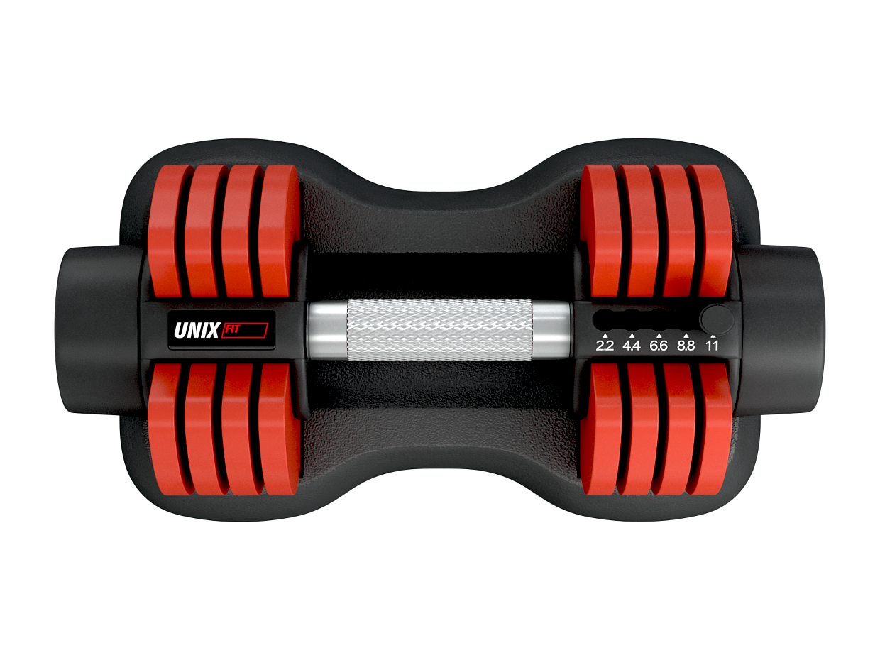 Гантель со ступенчатой регулировкой UNIX Fit весом 11 килограмма имеет 5 уровней нагрузки (от 2,2 до 11 кг). Современная конструкция позволяет изменять вес гантели за считанные секунды. Благодаря специальной системе замков при повороте индикатора веса фрагменты гантели, соответствующие выбранному весу, надежно крепятся на грифе. Использование данной системы позволит существенно сократить время, затрачиваемое на изменение веса снаряда во время тренировки. Упражнения с гантелей UNIX Fit поможет проработать бицепсы, трицепсы, а также грудные и дельтовидные мышцы.