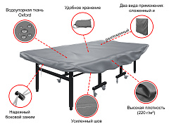 Чехол не предназначен для защиты от дождя и влаги теннисных столов для помещений, изготовленных из ДСП, ЛДСП, МДФ и других подобных материалов.