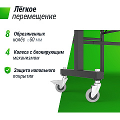 | Транспортировочные колеса | 8 шт (4 шт со стопором), маневренные, обрезиненные, Ø50 мм |