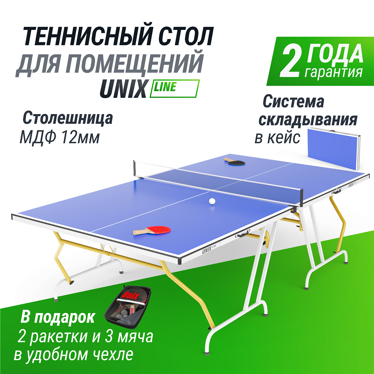 Универсальный стол для пинг-понга UNIX Line Simple Indoor станет отличным дополнением для игровых зон в помещениях, домах и офисах, а также в спортивных школах и клубах. Он прекрасно подходит как для взрослых, так и для юных пользователей. В комплекте со столом идут 2 ракетки и 3 мяча, упакованные в удобный чехол, так что вы сможете сразу начать играть. Сетка из нейлона оснащена винтовым крепление, благодаря чему легко устанавливается и надежно фиксируется, предотвращая смещение во время игры. Теннисный стол UNIX Line Simple Indoor для помещений станет вашим вкладом в активный образ жизни, радость общения и яркие воспоминания с друзьями и семьей.