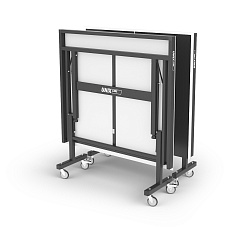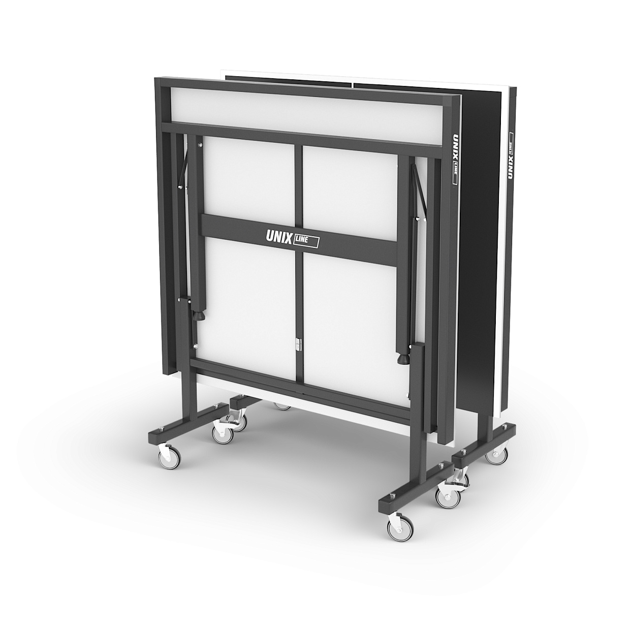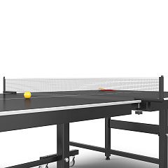 Стол оснащен надежной системой фиксации и тяжелыми ножками, что обеспечивает отличную устойчивость даже при сильном ветре или во время активных игр. Одну из сторон столешницы можно поднять для одиночной игры. Кроме того, наличие колесиков делает его перемещение простым и удобным.