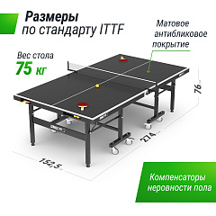 | Размер в рабочем состоянии, см (ДхШхВ) | 274 х 152,5 х 76 (стандарт ITTF) |