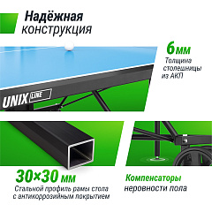 Размер универсального теннисного стола UNIX Line Compact Outdoor соответствует стандарту ITTF 274 х 152.5 х 76 см. Стол для пинг-понга изготовлен из высококачественного АКП и имеет столешницу толщиной 6 мм, что обеспечивает отличный отскок мяча до 23 см, делая игру более комфортной и предсказуемой. Стол не подвержен коррозии и воздействию влаги, что делает его устойчивым к различным погодным условиям. Данный материал обладает высокой стойкостью к ударам и царапинам, позволяя сохранять внешний вид стола и уберегая его от механических повреждений даже при интенсивном использовании. Матовое антибликовое покрытие теннисного стола снижает отражение света, что помогает игрокам лучше видеть мяч и его траекторию, делая игру более комфортной. Поверхность стола для пинг-понга легко очищается от загрязнений, позволяя поддерживать его в отличном состоянии.