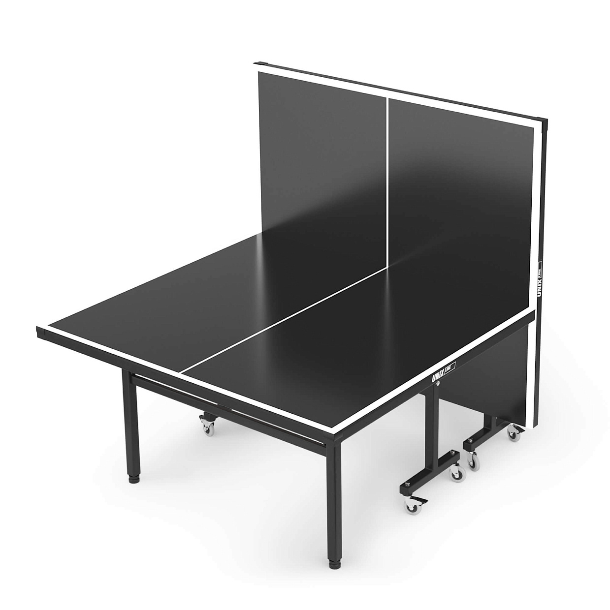 Металлическая рама теннисного стола UNIX Line имеет толщину стали 1,4 мм, размеры профилей составляют 20х40 и 40х40 мм. Благодаря таким характеристикам конструкции, теннисный стол сохраняет жесткость и устойчивость на любых покрытиях. Опоры теннисного стола оборудованы компенсаторами неровности.