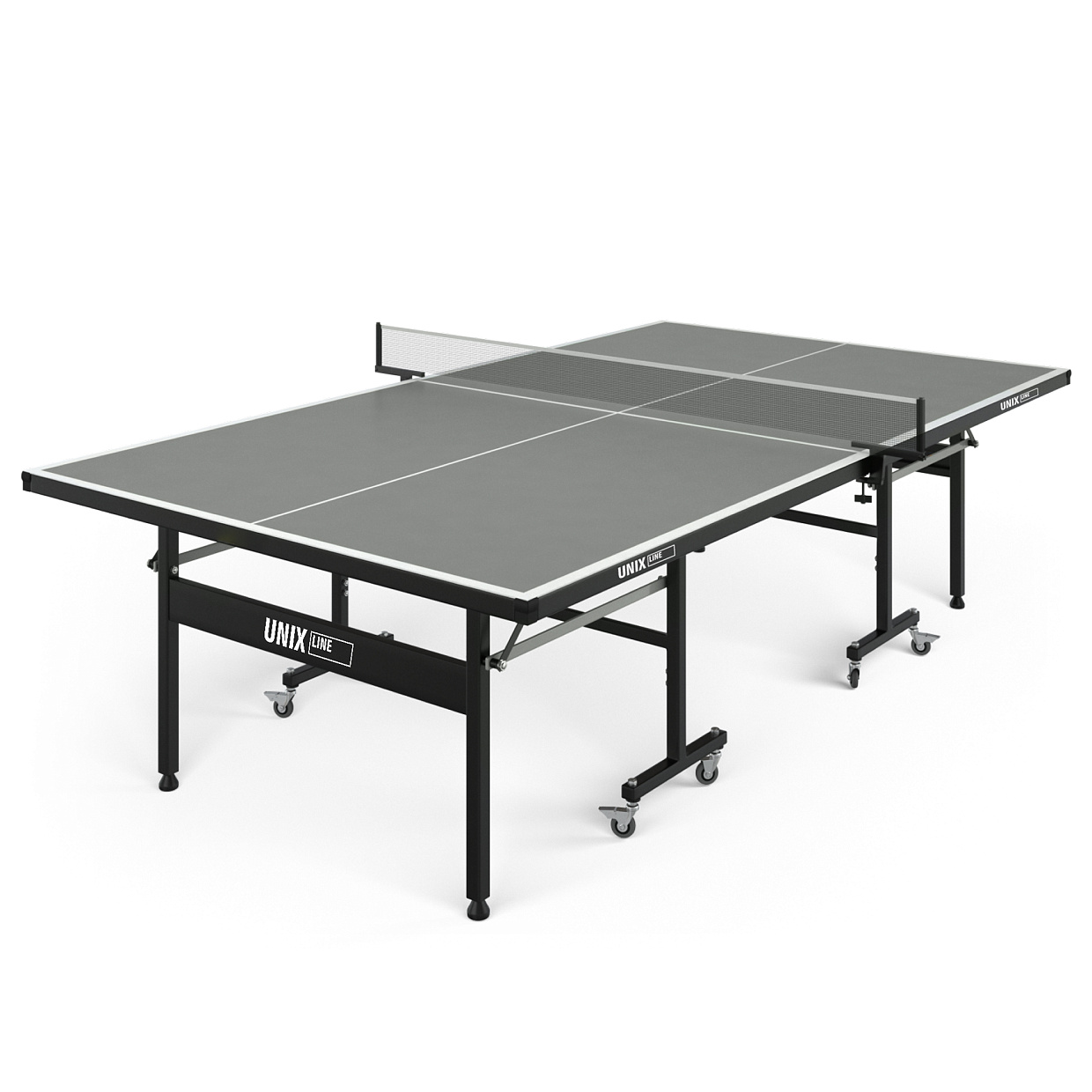 Металлическая рама теннисных столов UNIX Line имеет толщину стали 1,7 мм, размер профиля опор составляет 30х30 мм. Благодаря таким характеристикам конструкции рамы, теннисный стол сохраняет жесткость и устойчивость на любых покрытиях. Опоры теннисного стола оборудованы компенсаторами неровности.