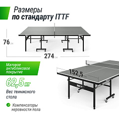 Для комфортного перемещения теннисный стол имеет 8 колес диаметром 50 мм с подшипниками. Колеса оборудованы фиксаторами и обладают высокой износостойкостью.