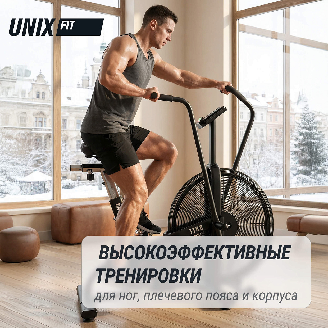 Велотренажер UNIX Fit техно-аэробайк / Techno AirBike 1100 PRO