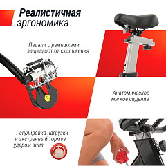 Колодочная система нагружения, тяжелый маховик 13 кг и бесступенчатая плавная система регулировки обеспечивают максимально плавный ход спинбайка. Предусмотрен экстренный тормоз.