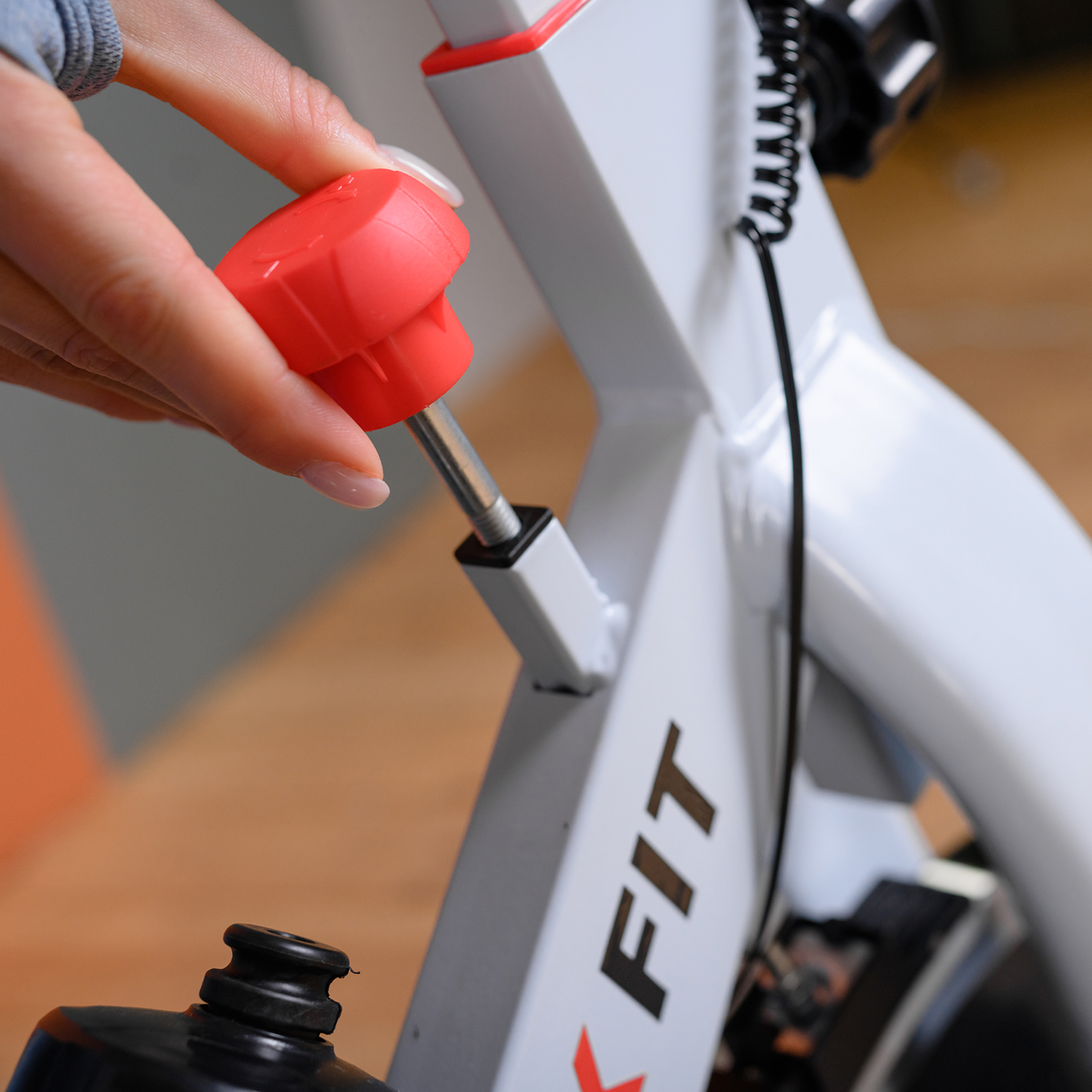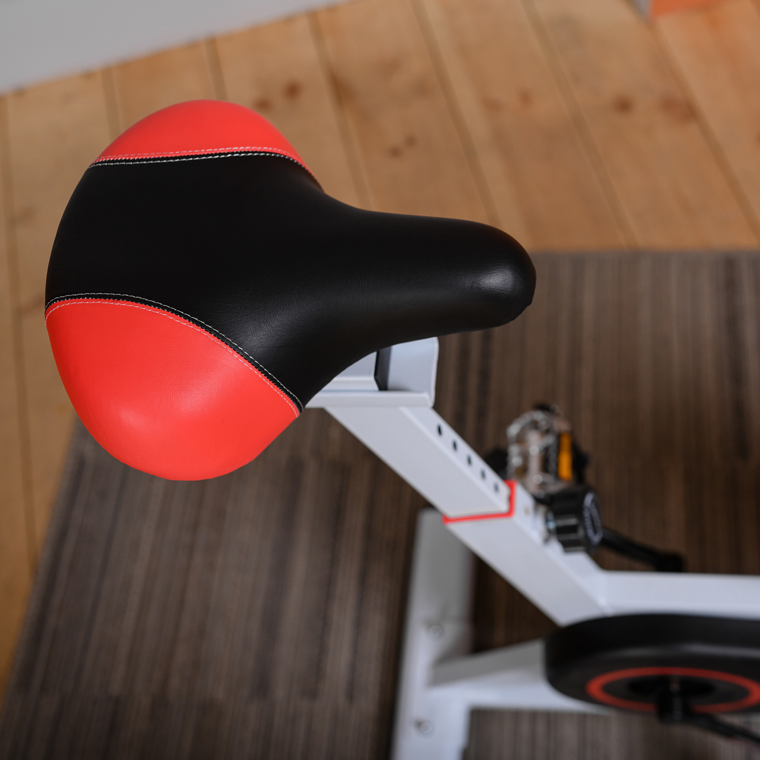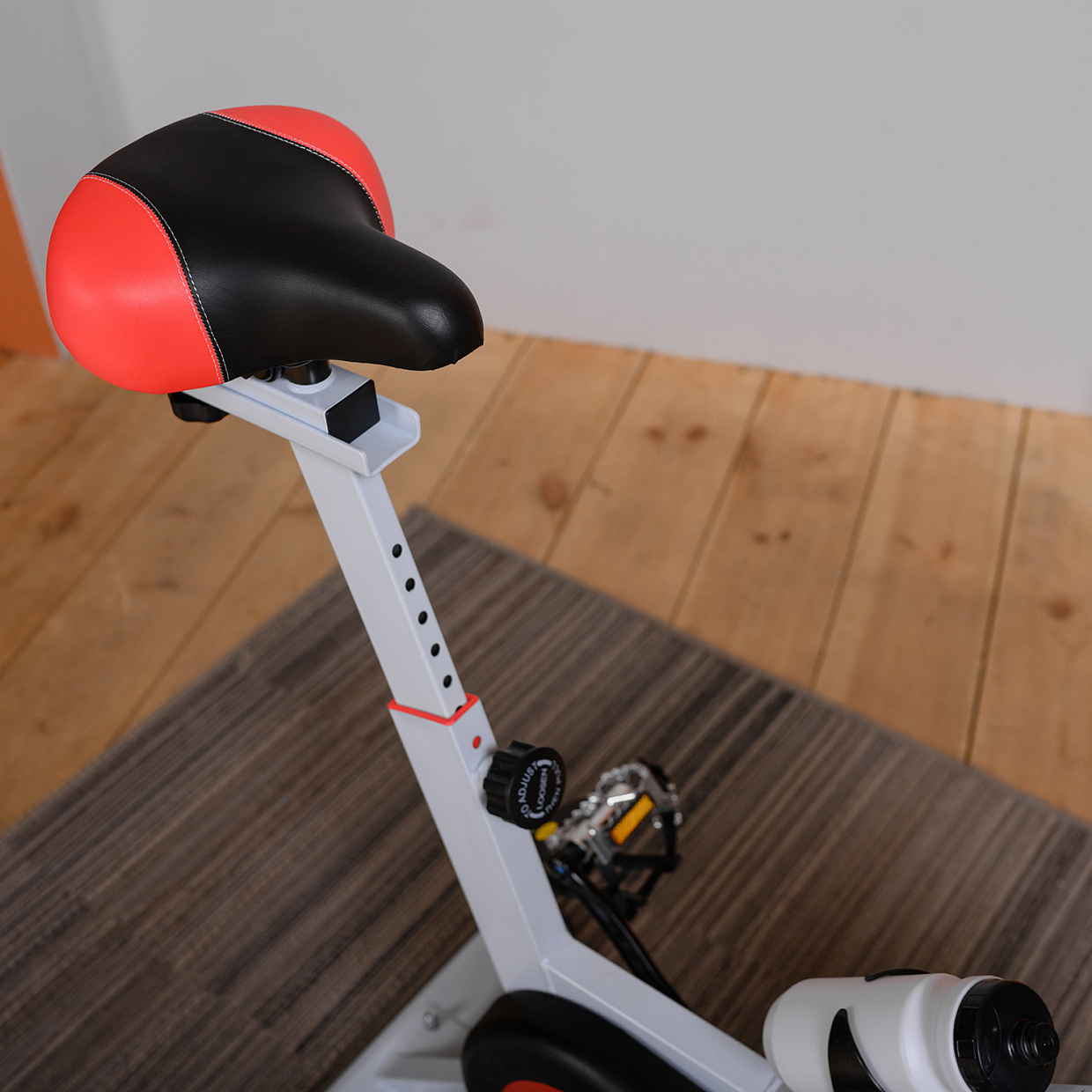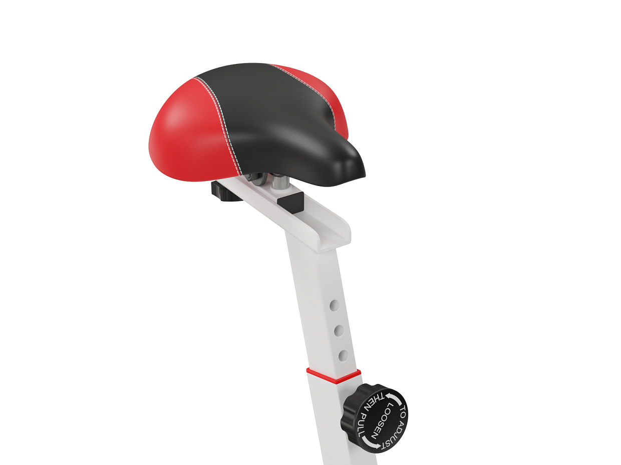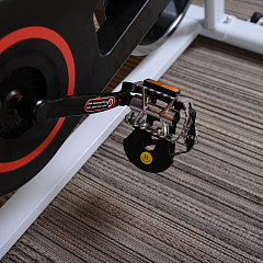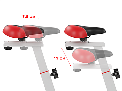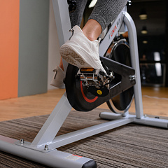 Эргономичное гелевое сиденье и руль имеют возможность регулироваться под пользователя: сиденье по горизонтали и вертикали, а руль по вертикали. Антискользящее покрытие на педалях, а также наличие на них ремешков-фиксаторов способствуют удобному расположению ноги во время тренировки. У спин-байка имеются специальные транспортировочные ролики, так что его перемещение по квартире не вызовет затруднений.