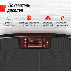 Виброплатформа, кабель питания, пульт управления, эластичный трос (2 шт.), коврик 67х37 см, руководство пользователя |