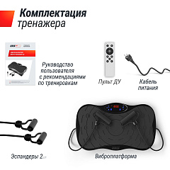 Виброплатформа, кабель питания, пульт управления, эластичный трос (2 шт.), руководство пользователя |