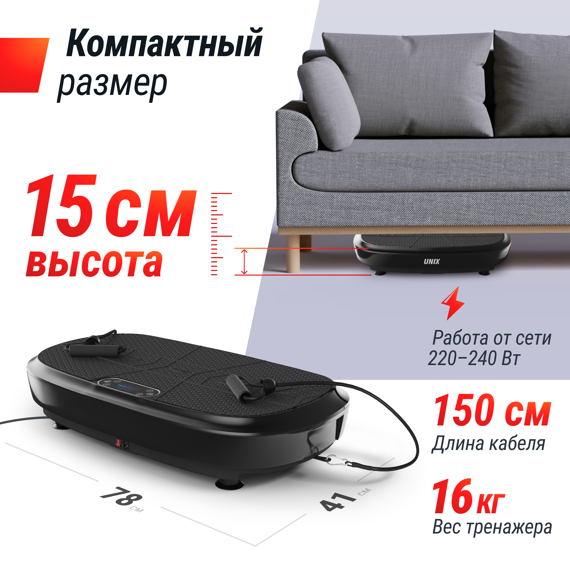 С помощью виброплатформы UNIX Fit вы сможете эффективно тренироваться в любое время и в любом месте. Это отличный способ разнообразить тренировки и сделать их более интересными!