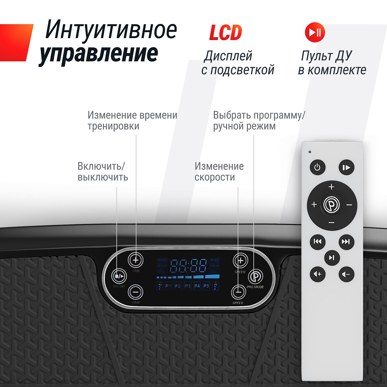 6. Легкость в использовании: Пульт управления и делает использование платформы простым и удобным. Вы можете менять режимы прямо во время тренировки. Тренажером также можно управлять с встроенной панели управления. Возможность подключения по Bluetooth.